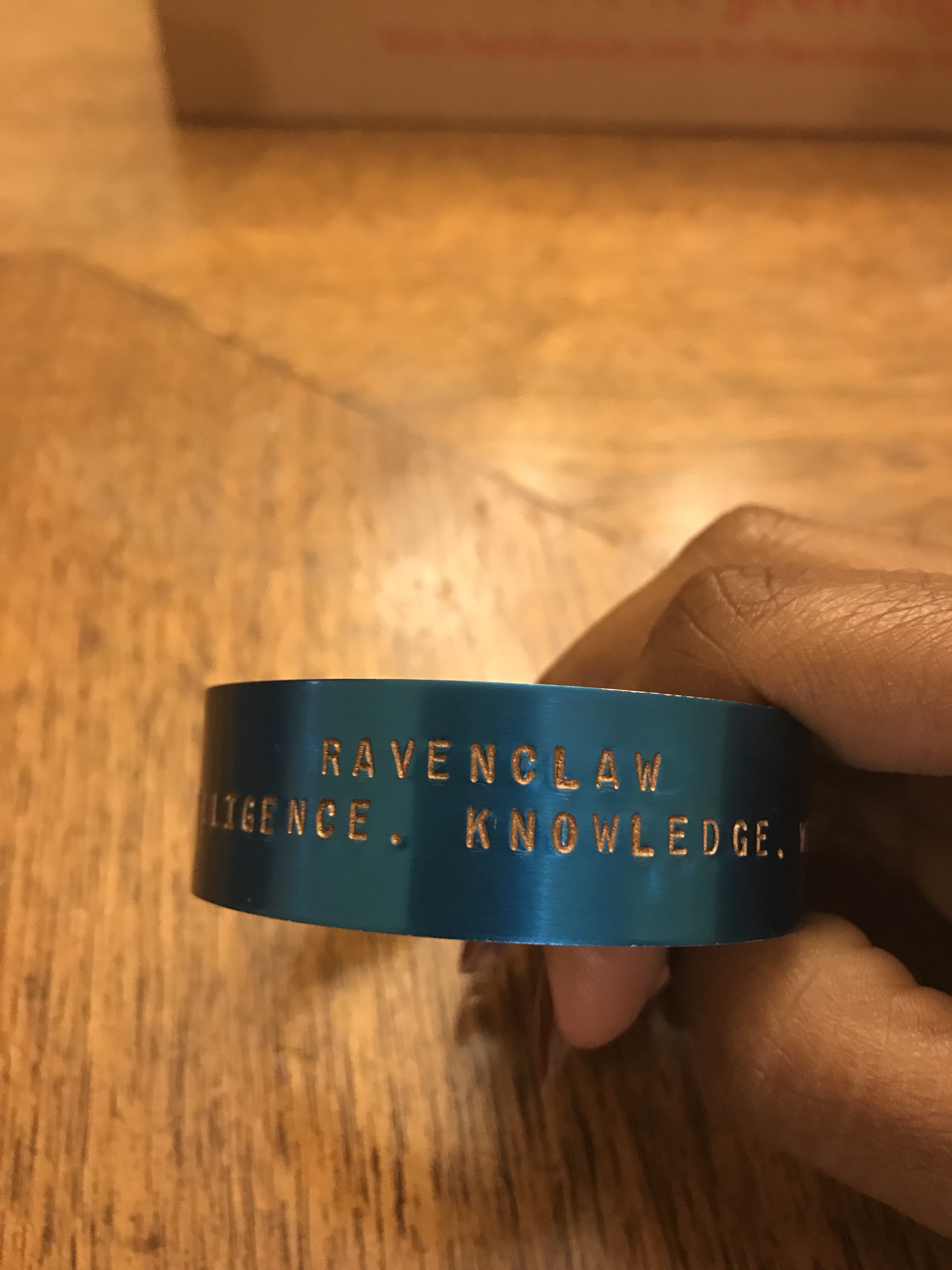 After a few hours at NASA we made our way to our local comic convention. I managed to see a con friend Stephanie and I made my way out of the vendor room without doing too much damage. Stephanie is the brains behind Red Fish Rue Fish, a company that makes metal bracelets, pins, iron-ons, and much more. I bought my three year old a bookmark and myself this cool Ravenclaw bracelet. I couldn’t get the word “wit” into the photo but Potterheads know how we roll.